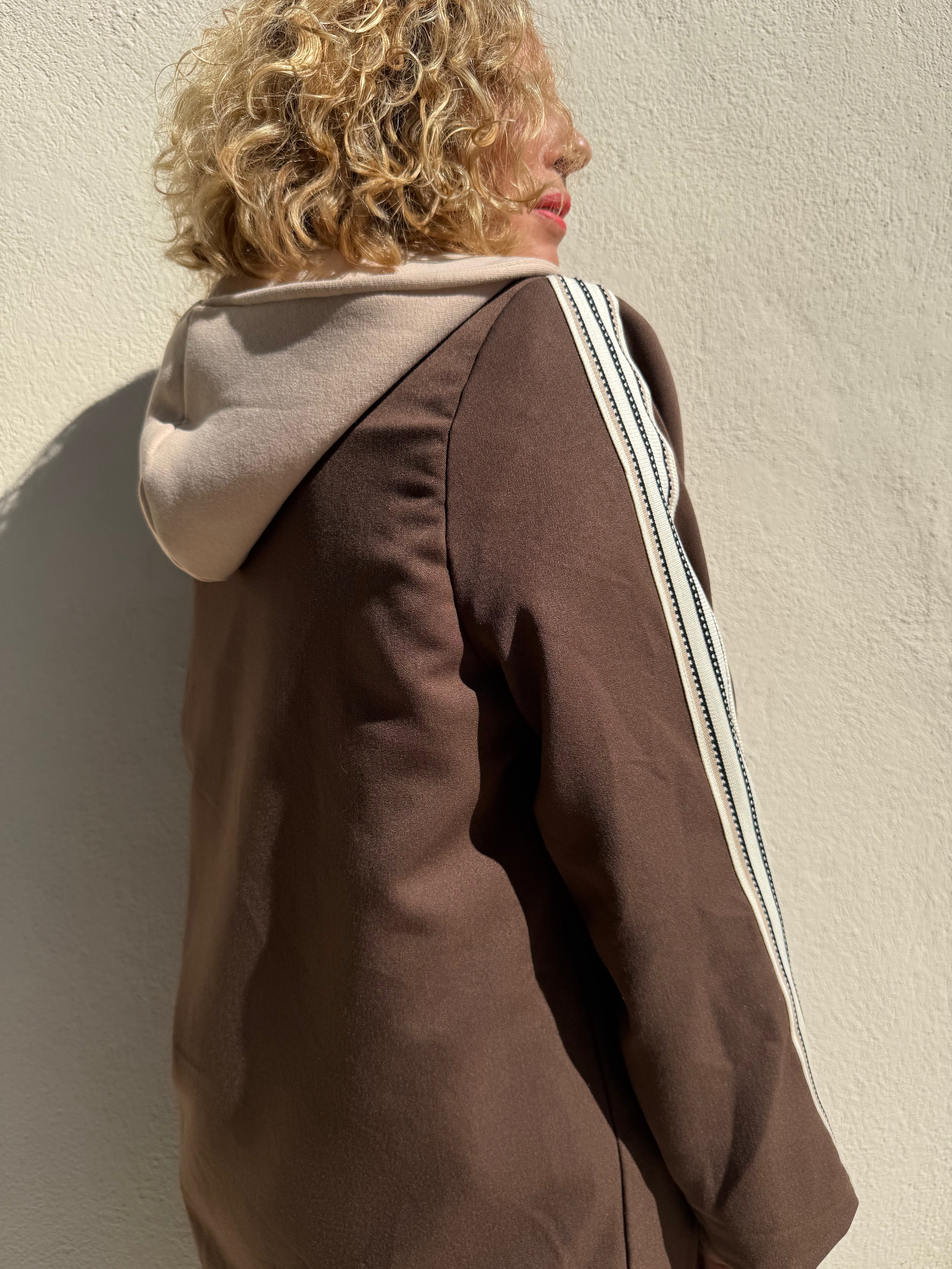 Optez pour un look sporty chic avec la veste blazer Tony. Son design unique combine l’élégance d’un blazer et le confort d’un sweat grâce à sa capuche insérée et sa fermeture zippée. Les bandes sport sur le côté des manches apportent une touche moderne et tendance.