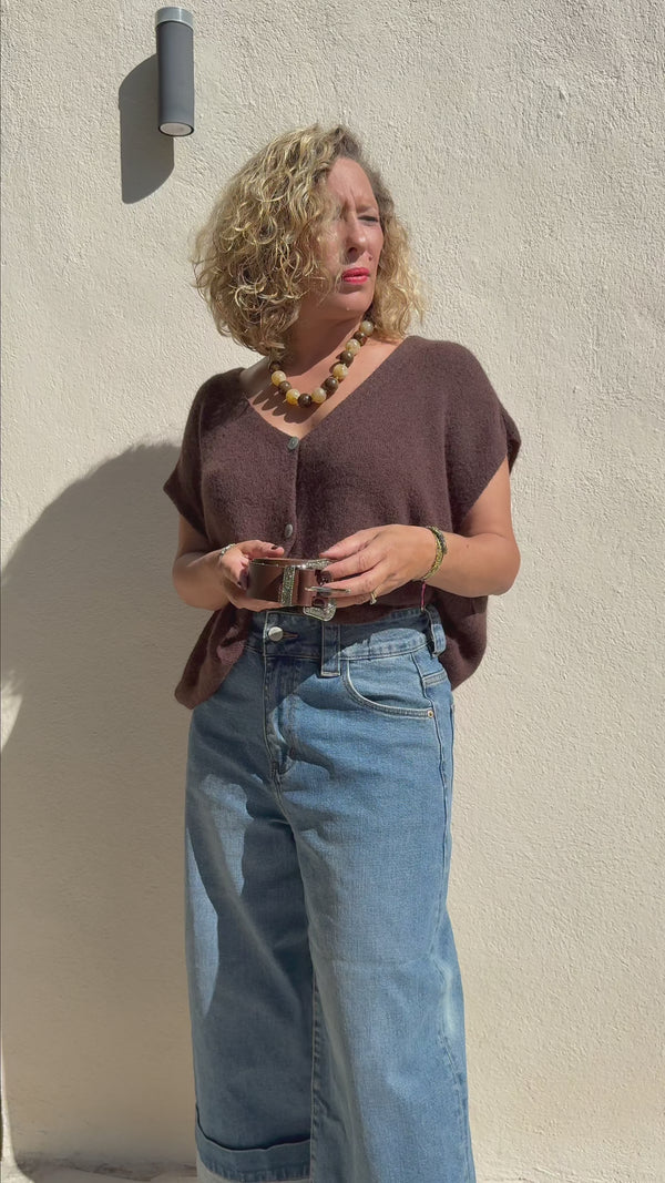 Cette ceinture marron Maya séduit par sa boucle argentée finement travaillée, ornée de délicats motifs floraux qui évoquent un style ranch authentique. Ses studs triangulaires disposés en quinconce apportent une touche originale et unique à l’ensemble. Disponible en deux teintes, noire et marron, elle s’adapte facilement à tous vos looks pour une allure décontractée mais soignée.