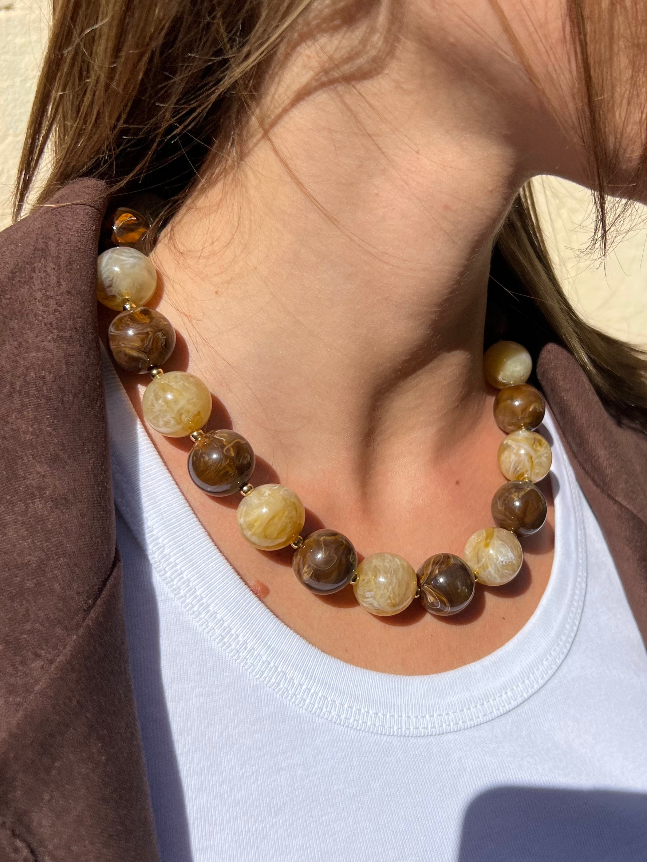 Sublimez vos tenues avec le Collier Clélie, un bijou tendance et raffiné. Décliné en bordeaux, kaki et choco-ivoire, il apporte une touche moderne et chic à tous vos looks. Conçu en résine légère, il allie confort et style pour être porté toute la journée sans effort.