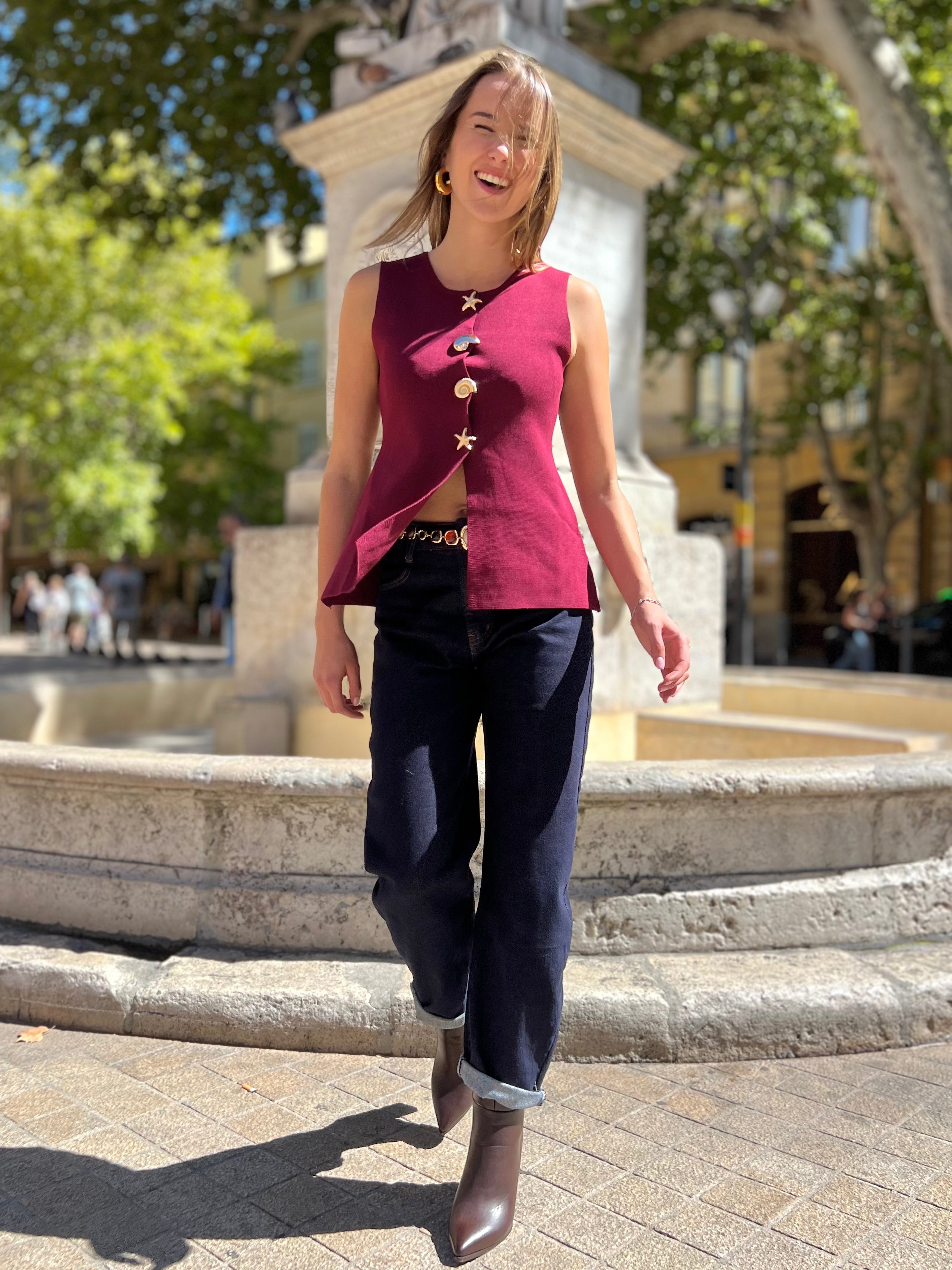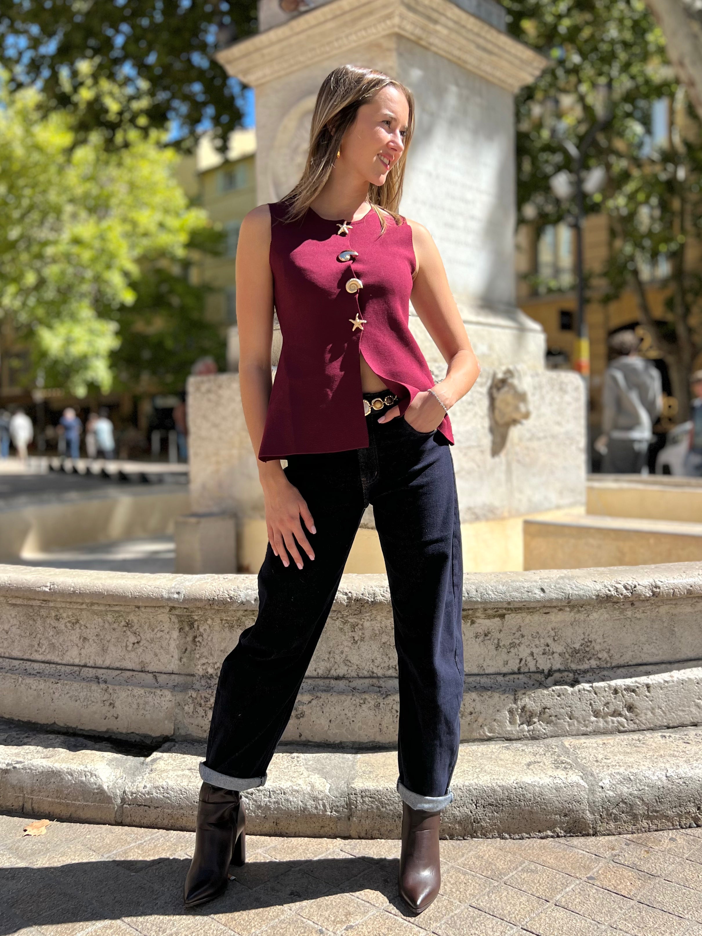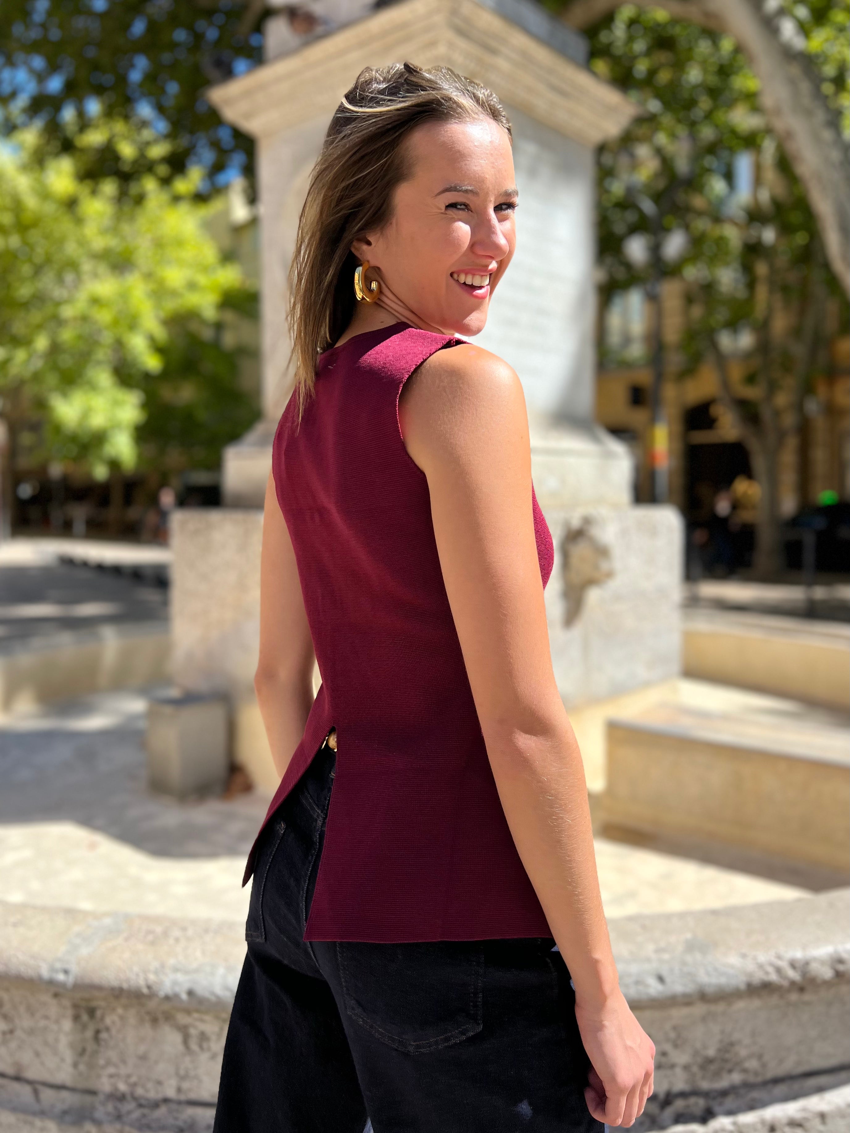 Adoptez un style élégant et moderne avec la Veste sans manche Esmé. Déclinée en bordeaux, ivoire et taupe, elle apporte une touche raffinée à toutes vos tenues, que ce soit pour le bureau ou vos sorties.