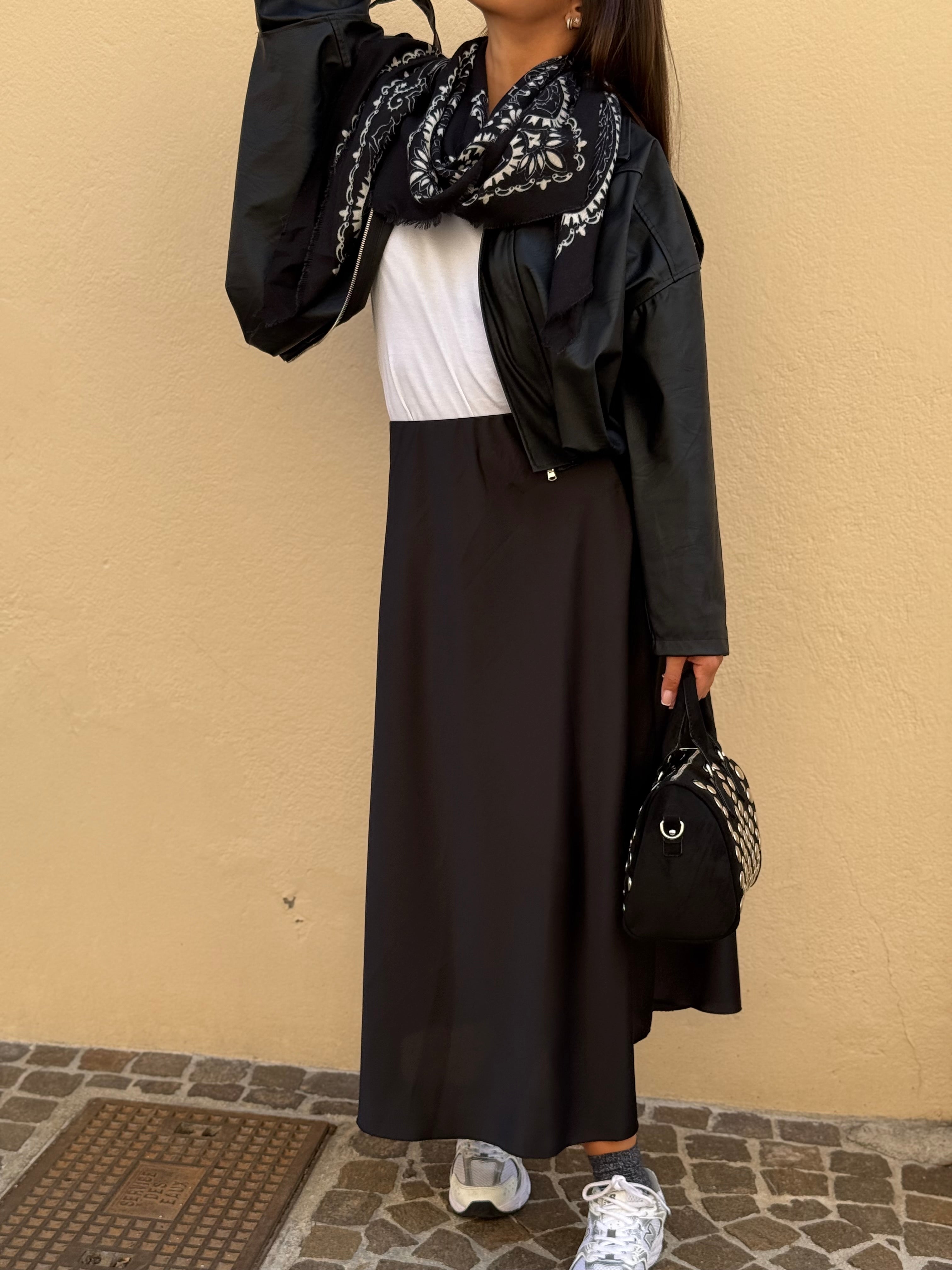 Craquez pour la Jupe Alba, une pièce chic et intemporelle en satin fluide. Grâce à son élastique à la taille, elle s’adapte facilement à toutes les morphologies et offre un confort optimal. Son tombé élégant et sa matière satinée en font l’alliée parfaite pour vos looks du quotidien comme pour vos soirées.