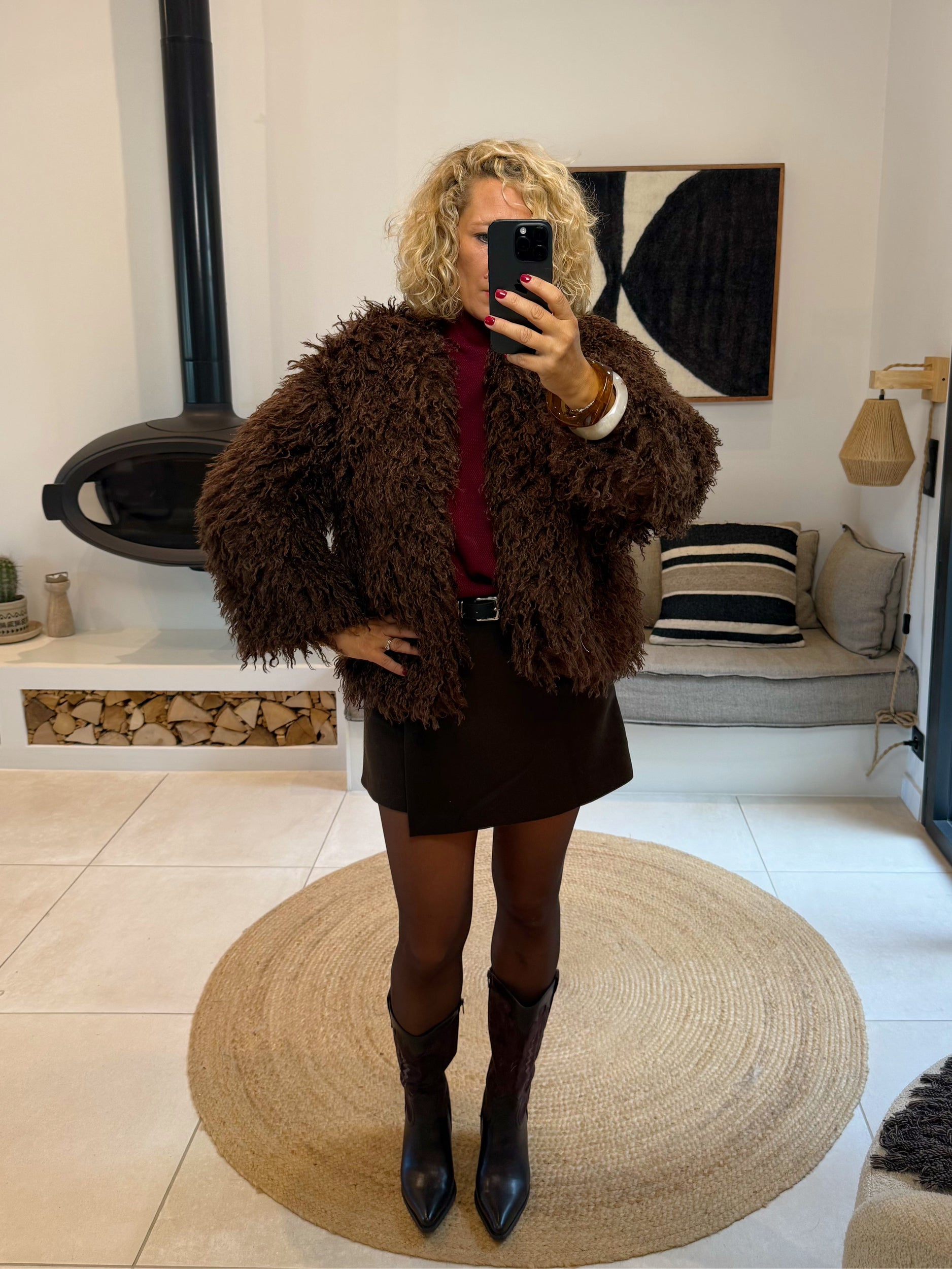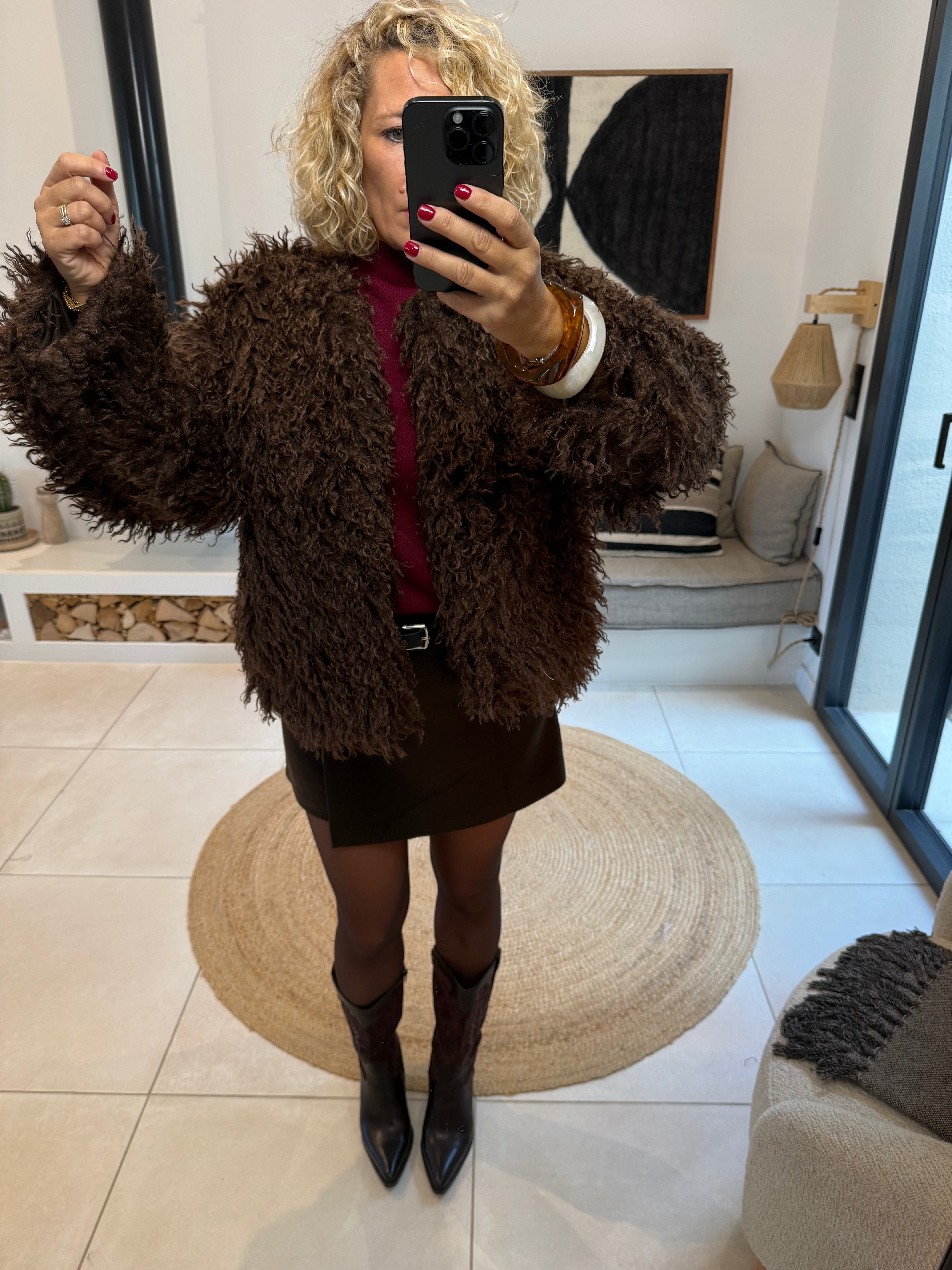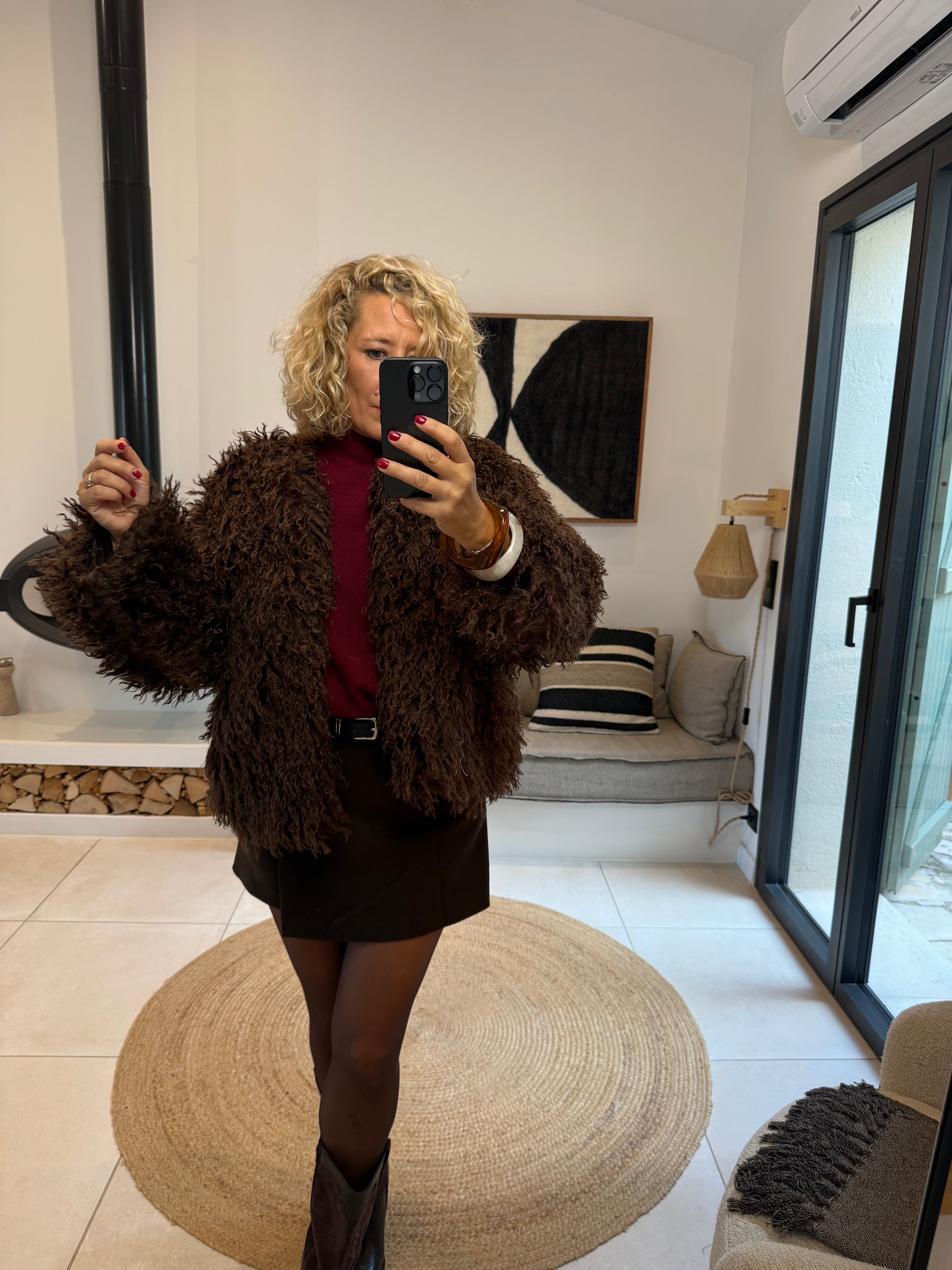 - Veste fausse fourrure à poils longs