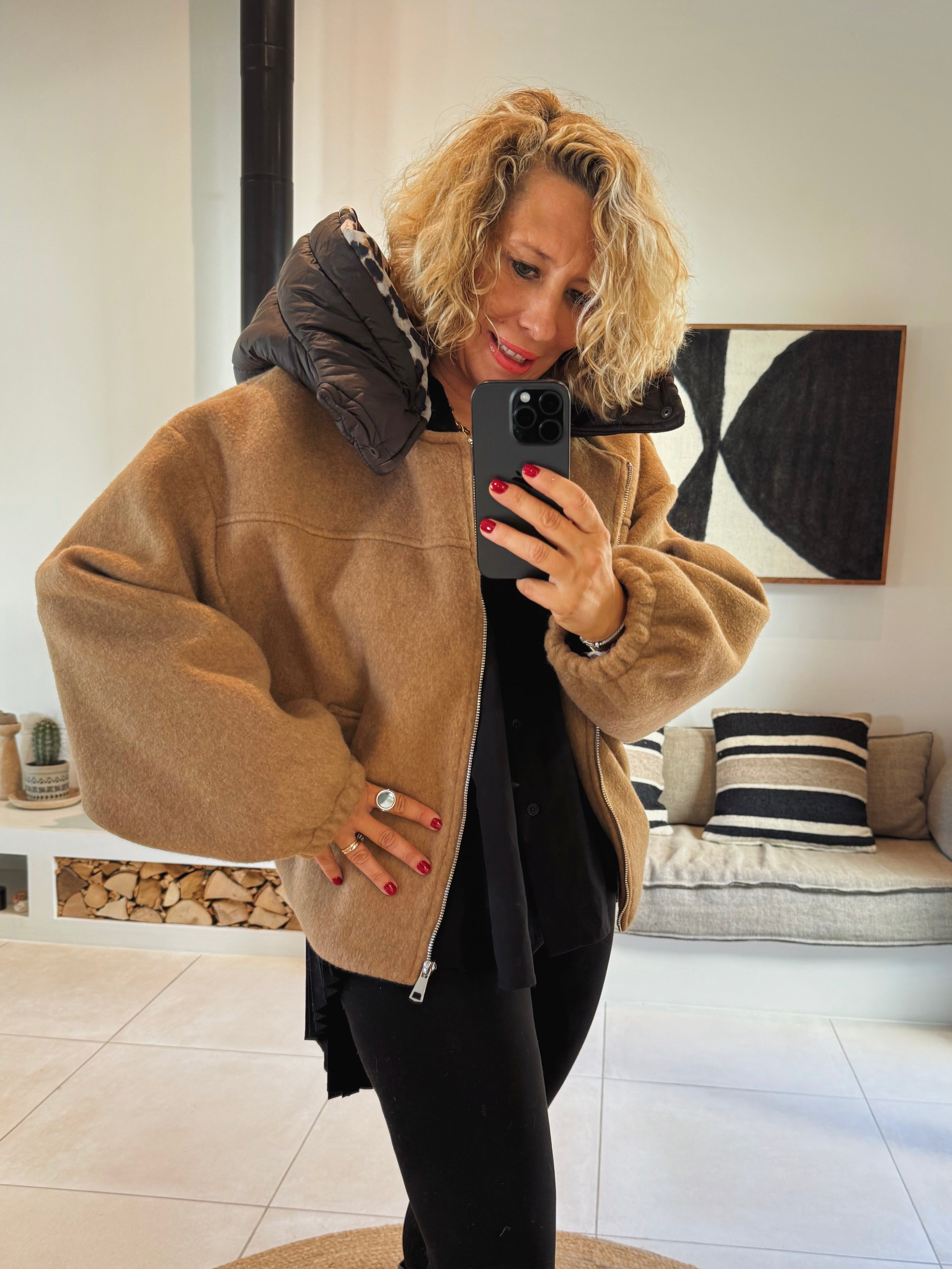 Découvrez la Veste Paulette Crème, alliant confort et style avec sa matière douce et chaude. Sa capuche amovible offre polyvalence pour s’adapter à toutes les envies, tandis que l’intérieur imprimé léopard apporte une touche originale et tendance. Parfaite pour rester au chaud tout en affichant une allure décontractée et unique.